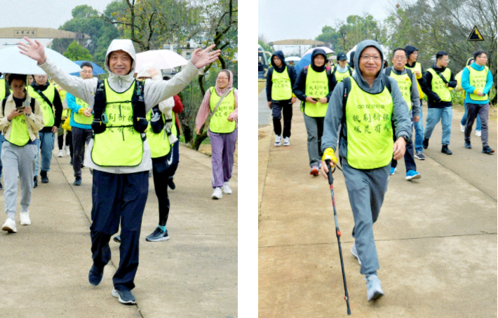 集團副董事長鐘海榮、保靈藥業(yè)總經(jīng)理龐孝銓神采奕奕地行進在毅行隊伍中,他們用身體力行的行動鼓舞著前行的每組隊員。
