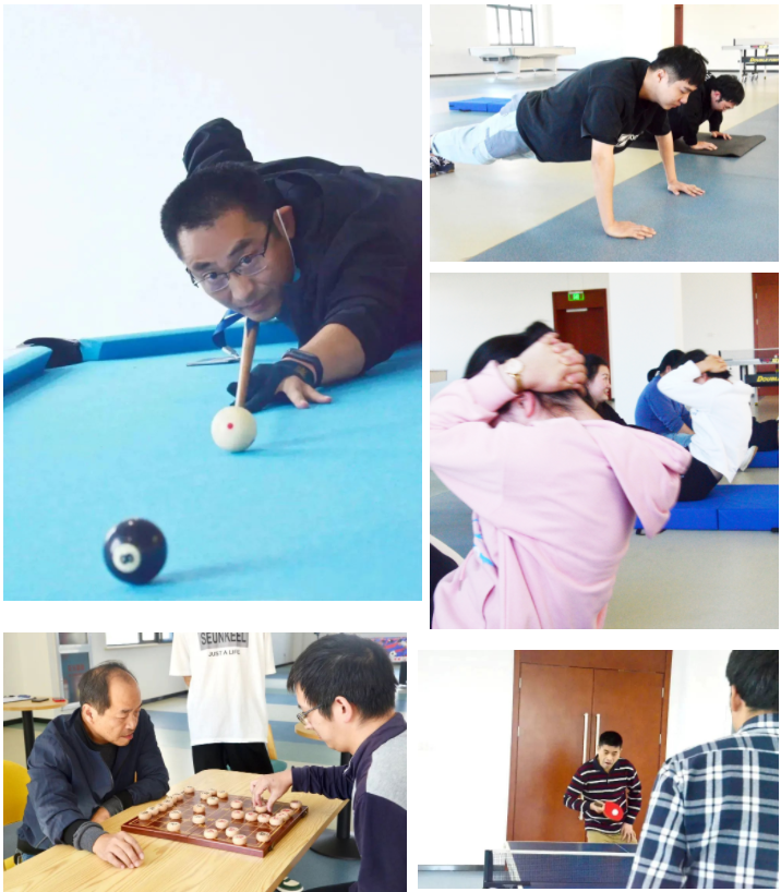 此次運動會共九個項目,分成“個人賽”和“團體賽”兩個賽道,力將“趣味”進行到底!個人賽包含:象棋、俯臥撐、仰臥起坐、乒乓球、臺球五個項目,共29名員工參與。大家全力以赴并享受其中,體驗運動的快樂和競爭的樂趣。